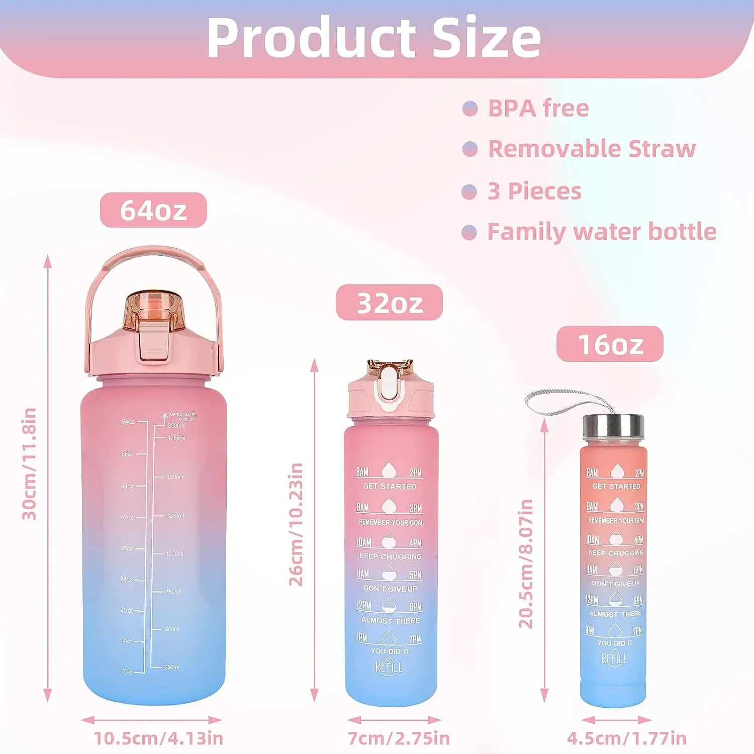 3pcs Grande Capacidade Garrafa De Água Set Plástico Fosco Gradiente Portátil Carregando Handle Conjunto de 3 Canecas Plásticas