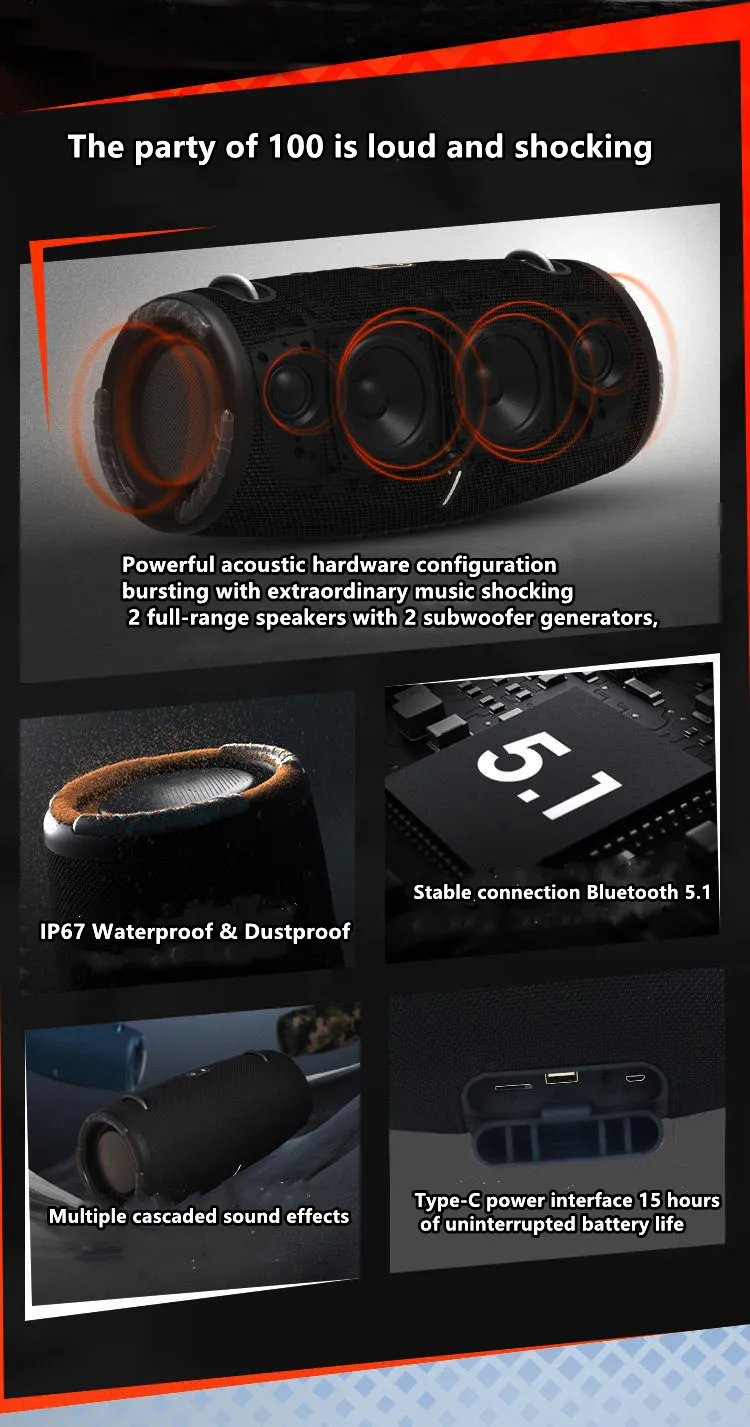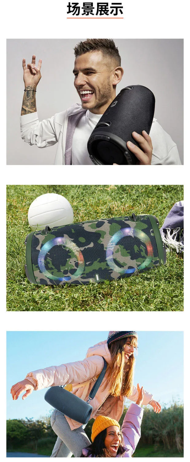 Alto-falante Bluetooth de alta potência, portátil, RGB, luz colorida, impermeável, subwoofer sem fio, 360 surround estéreo, TWS FM Boombox