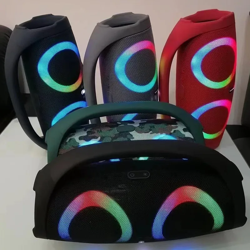 Alto-falante Bluetooth portátil RGB luz colorida subwoofer sem fio à prova d' água 360 estéreo surround TWS FM boombox